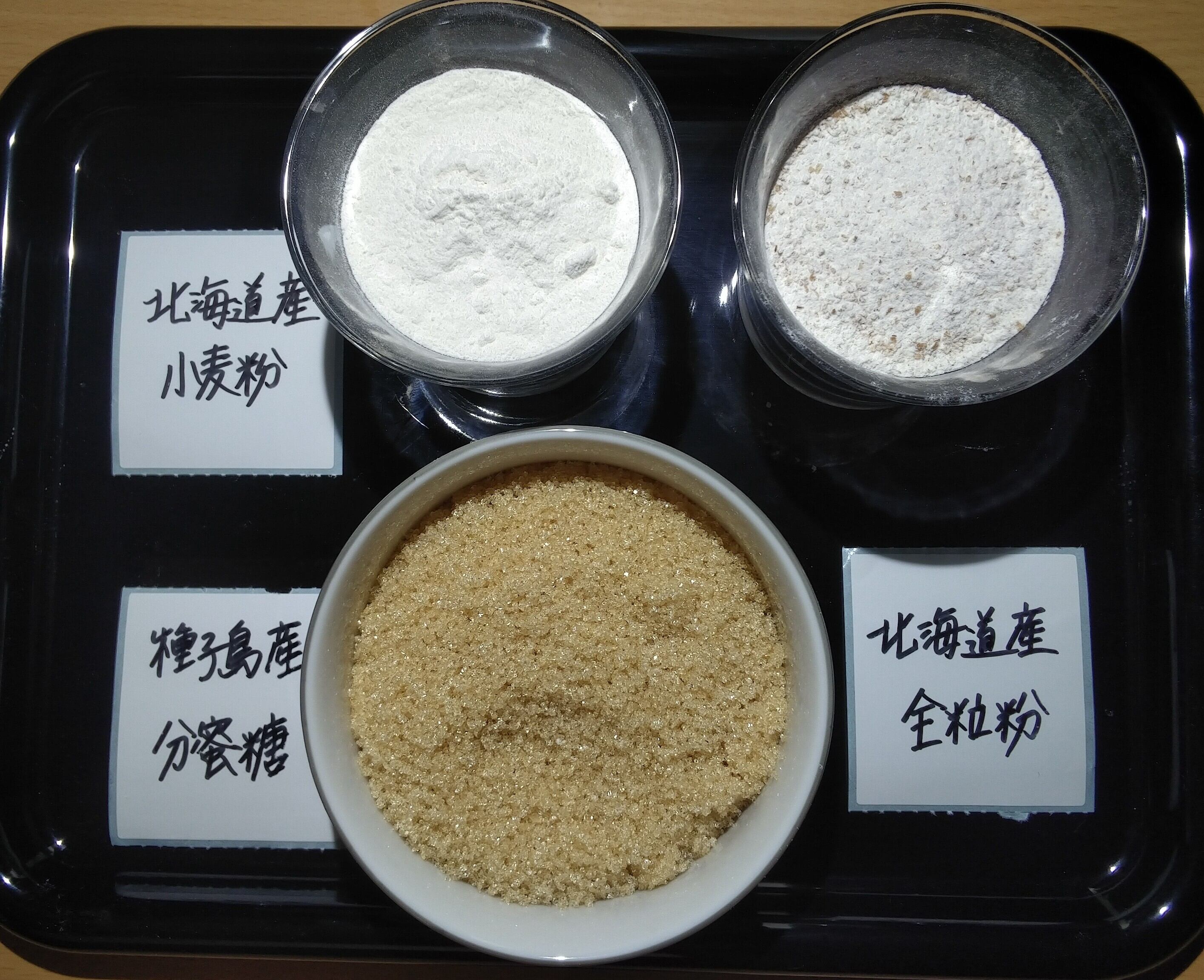 砂糖はミネラル分を多く含む種子島産の分蜜糖、塩は沖縄のシママース、防腐剤や乳化剤などの食品添加物、またトランス脂肪酸を多く含むマーガリンは一切使用していません。
